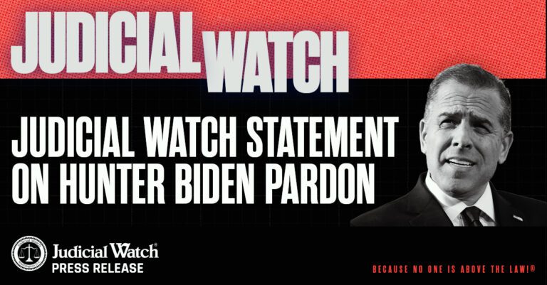 (Washington, DC) – Judicial Watch President Tom Fitton made the following statement on President Joe Biden’s controversial pardon of his son Hunter Biden: