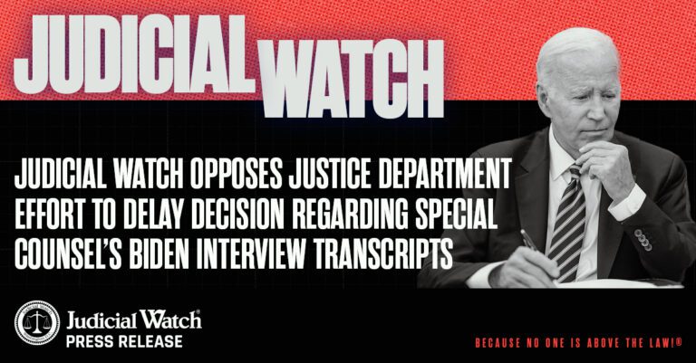 Judicial Watch Opposes Justice Department Effort to Delay Decision Regarding Special Counsel’s Biden Interview Transcripts