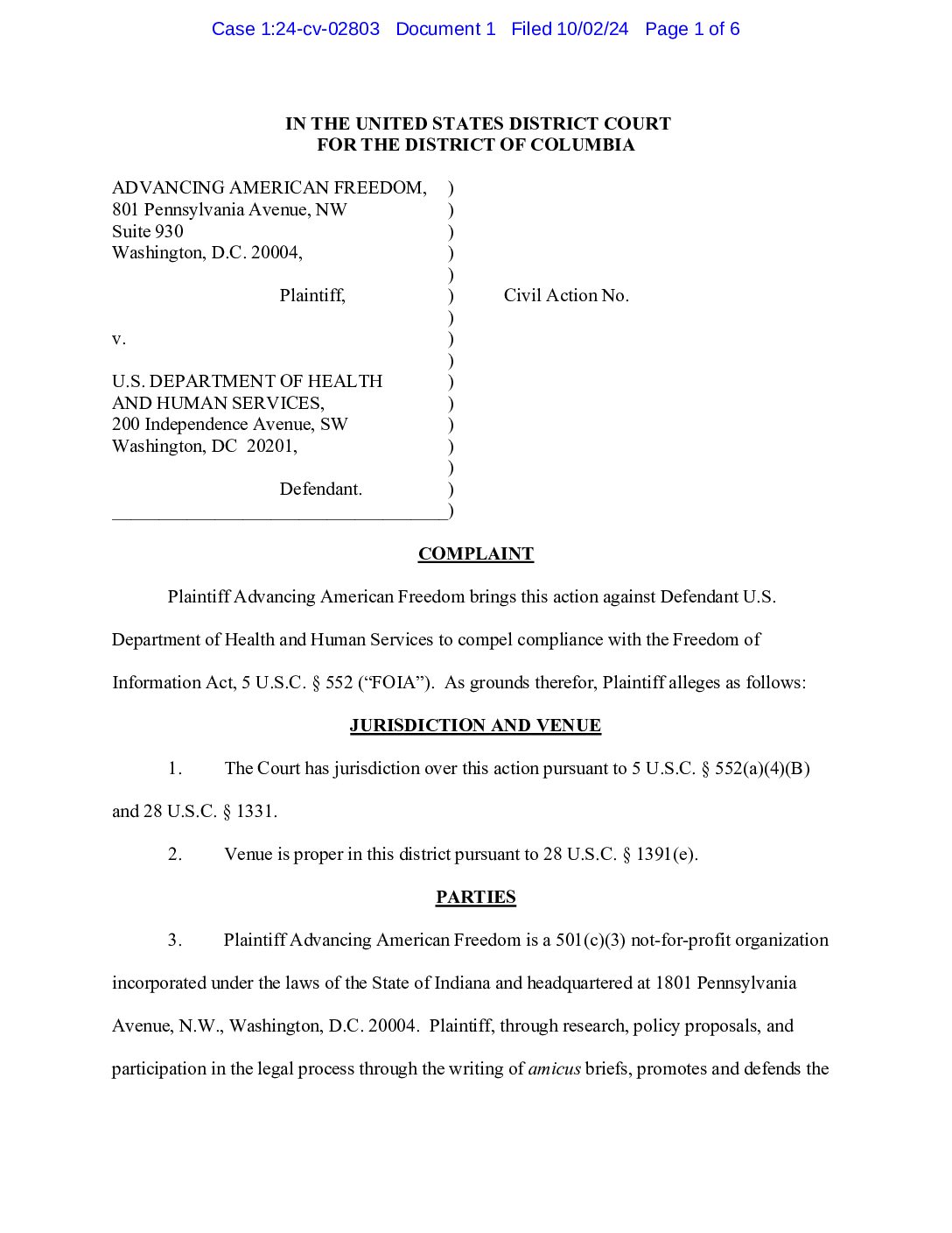 Adv Am Freedom v HHS Mifeprex complaint 02803