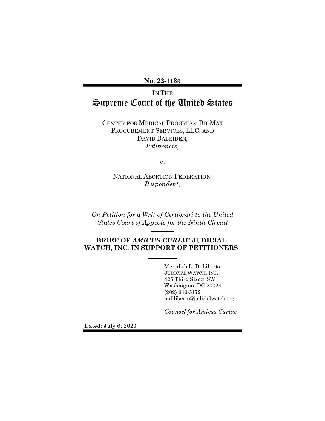 Center for Medical Progress v. National Abortion Federation