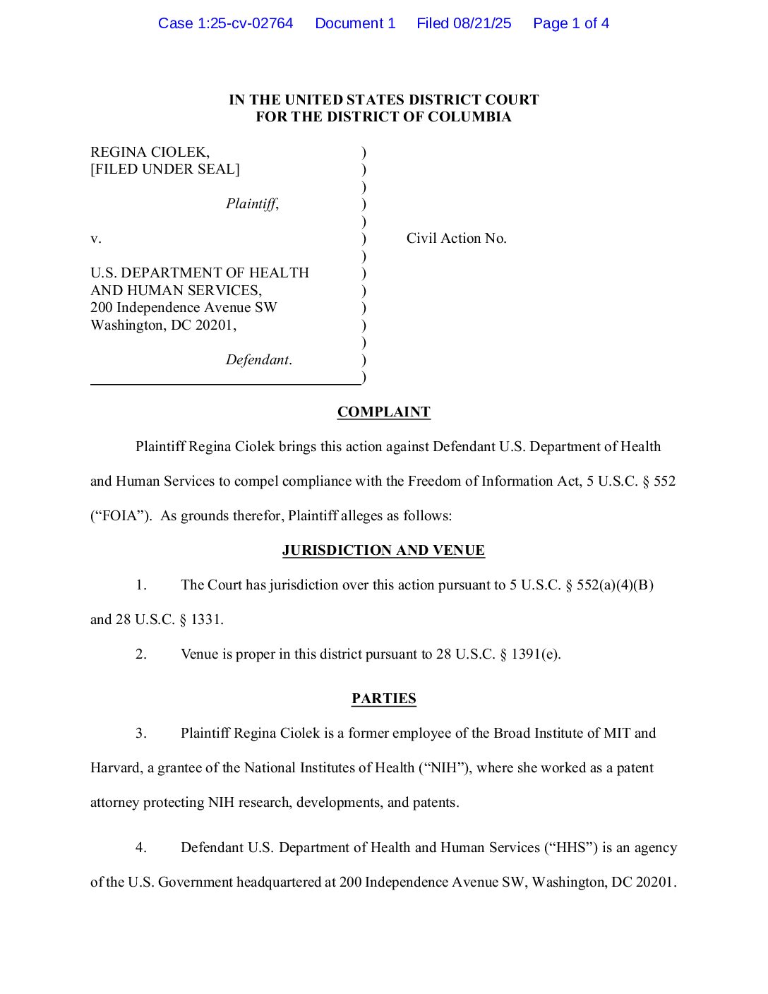 Ciolek v. Health and Human Services complaint 02764