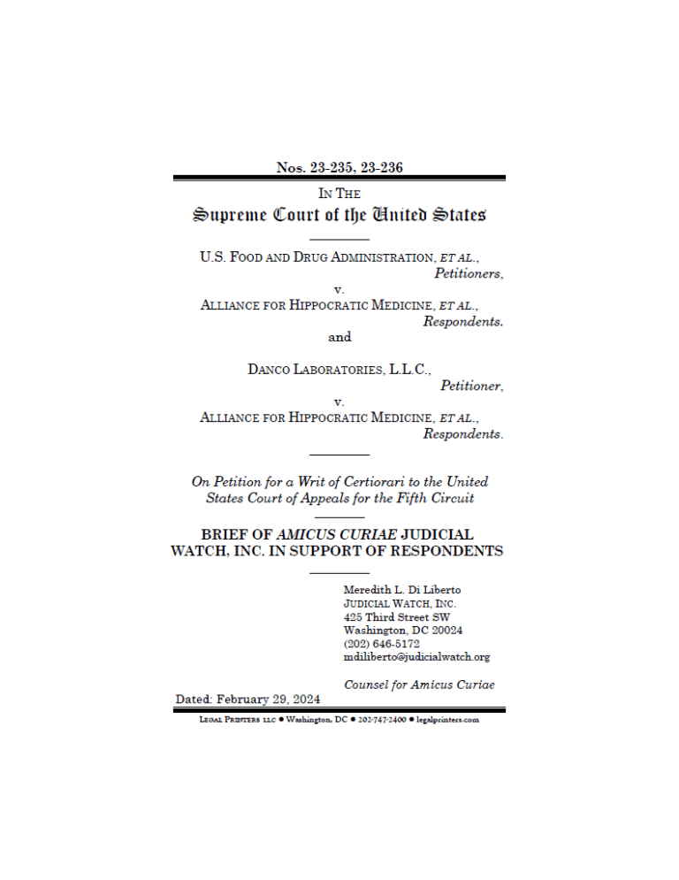 (Washington, DC) – Judicial Watch President Tom Fitton responded today to the Supreme Court of the United States 7-2 decision in favor of granting standing in a historic case file...