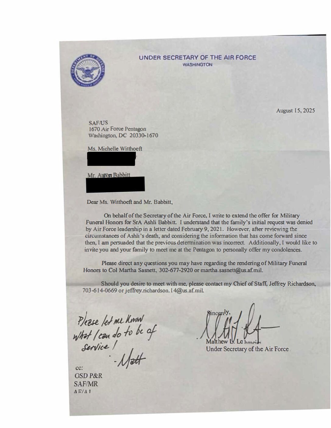 Hegseth Babbitt letter 2025