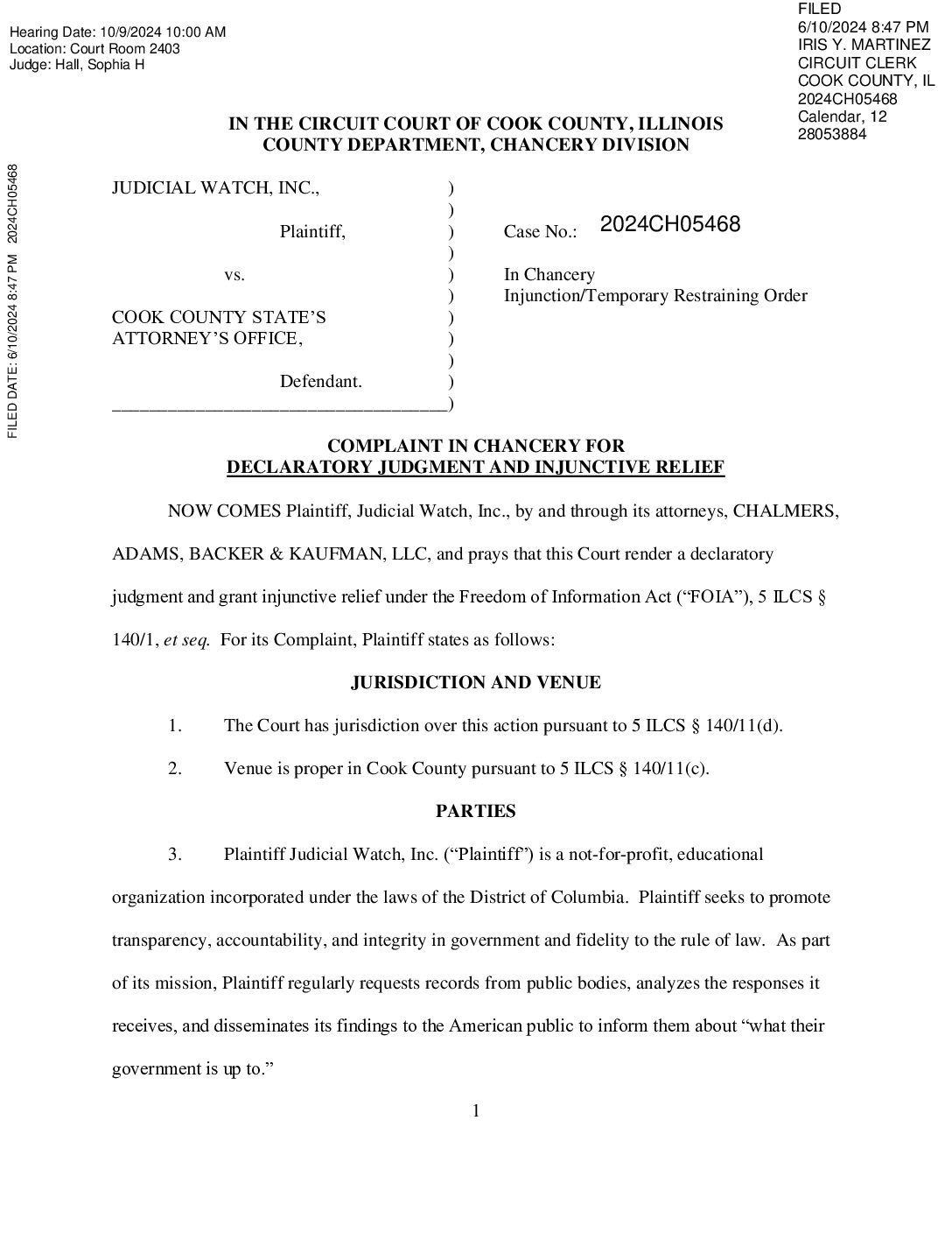 Judicial Watch, Inc. is a conservative, non-partisan educational foundation, which promotes transparency, accountability and integrity in government, politics and the law.