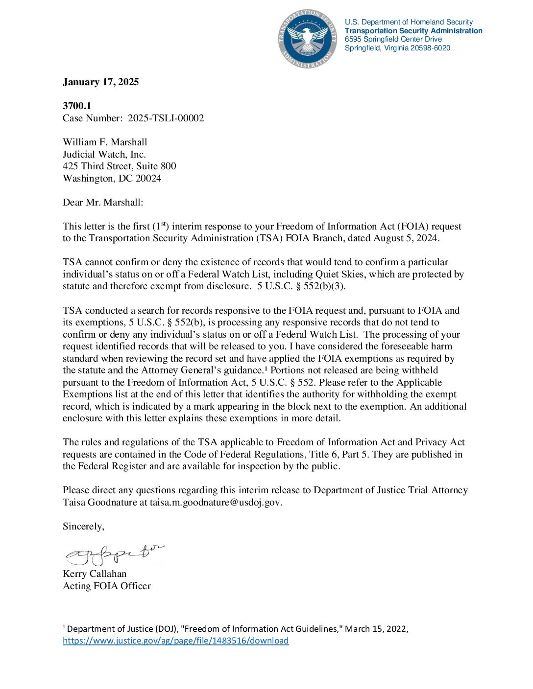 JW v DHS Gabbard TSA Interim Response 03427