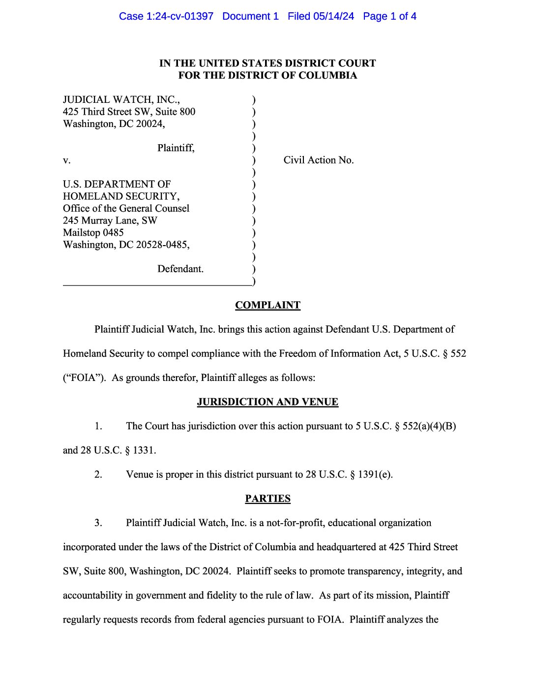 Judicial Watch, Inc. is a conservative, non-partisan educational foundation, which promotes transparency, accountability and integrity in government, politics and the law.