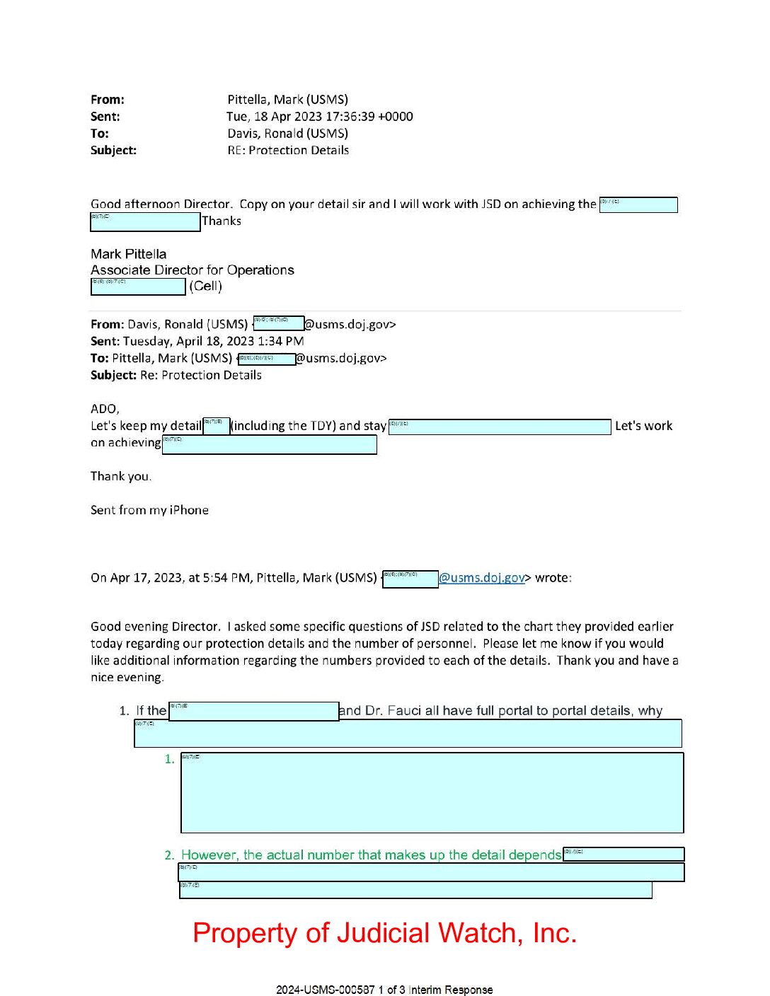 JW v DOJ Fauci US Marshals Detail records 02606
