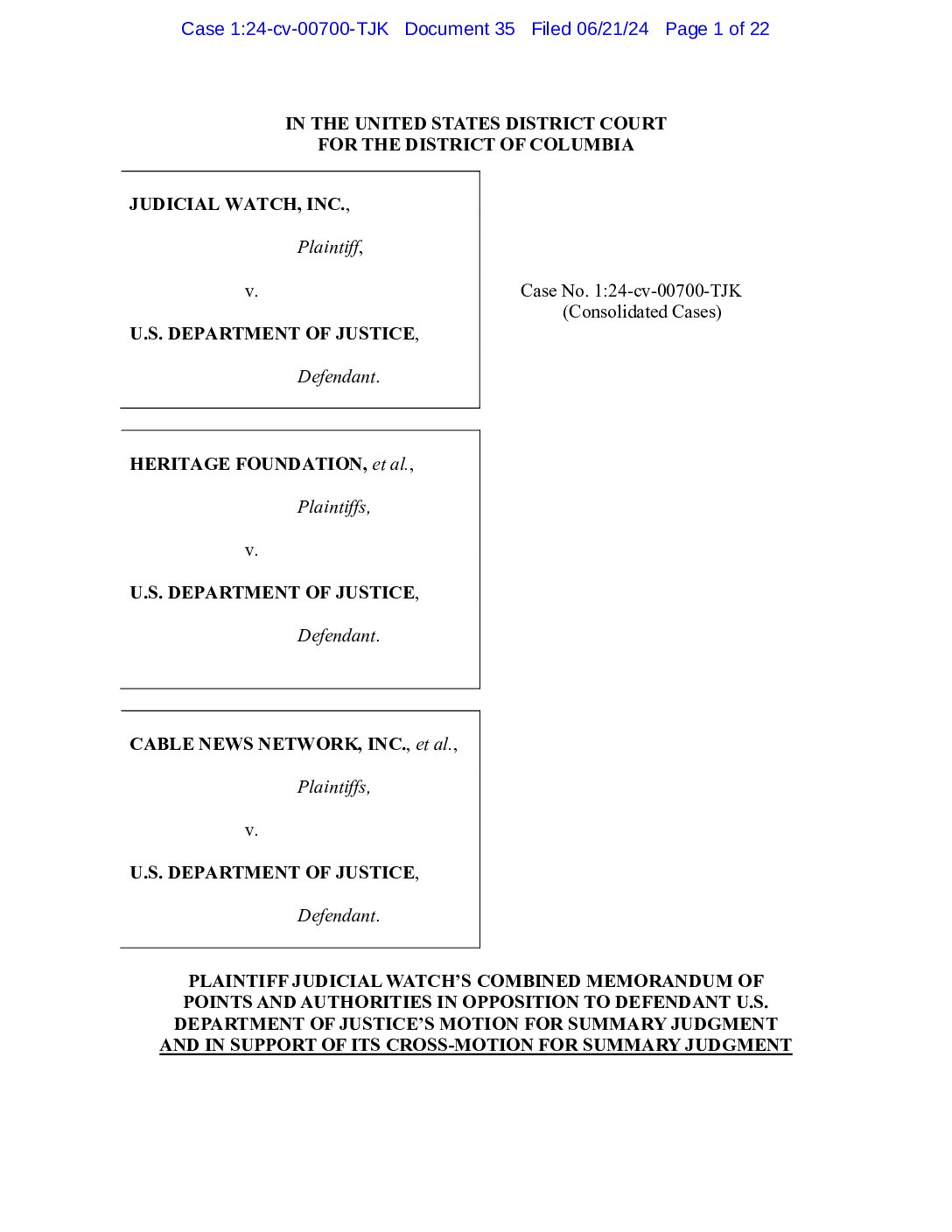 Judicial Watch, Inc. is a conservative, non-partisan educational foundation, which promotes transparency, accountability and integrity in government, politics and the law.