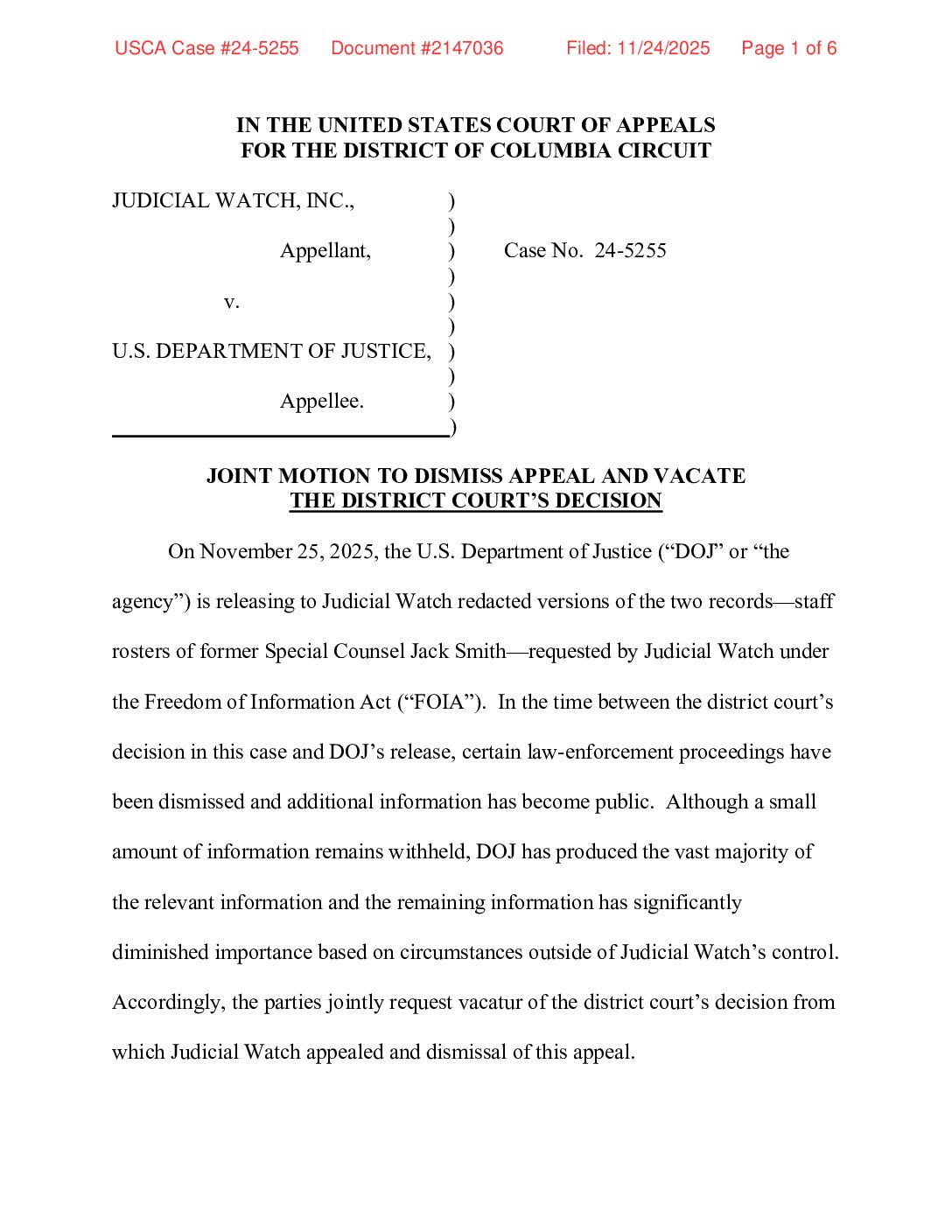 JW v DOJ Jack Smith Dismiss Appeal 01485 05255