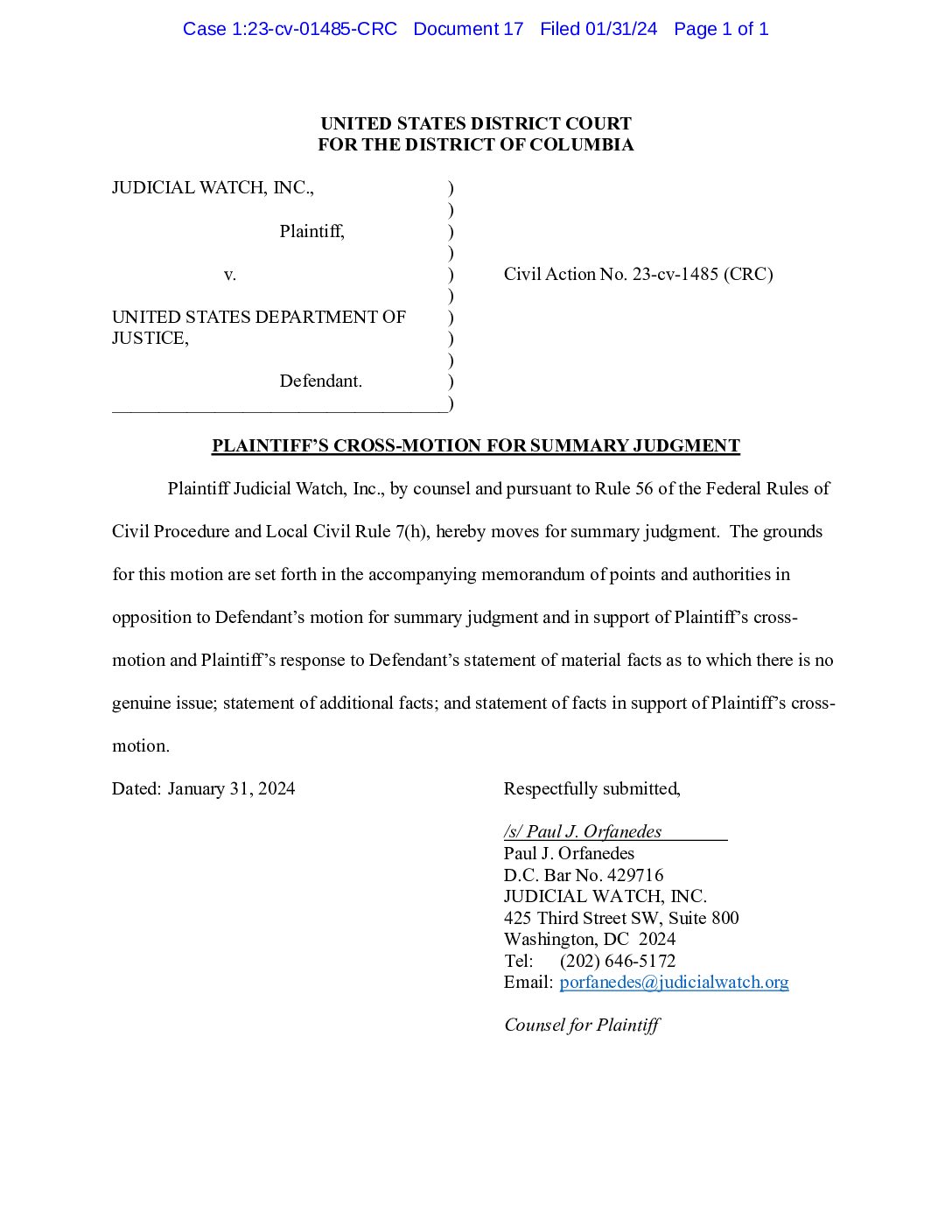 Judicial Watch, Inc. is a conservative, non-partisan educational foundation, which promotes transparency, accountability and integrity in government, politics and the law.