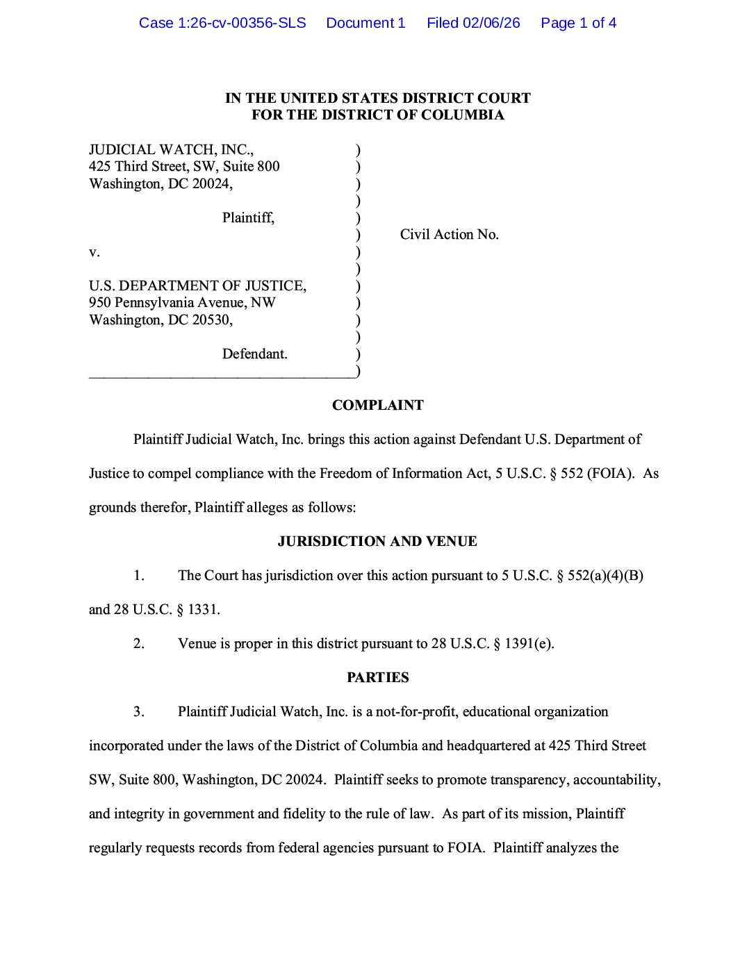 Judicial Watch, Inc. is a conservative, non-partisan educational foundation, which promotes transparency, accountability and integrity in government, politics and the law.