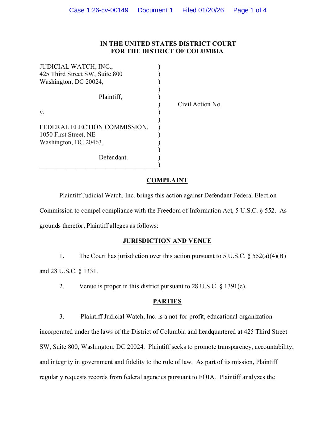 Judicial Watch, Inc. is a conservative, non-partisan educational foundation, which promotes transparency, accountability and integrity in government, politics and the law.