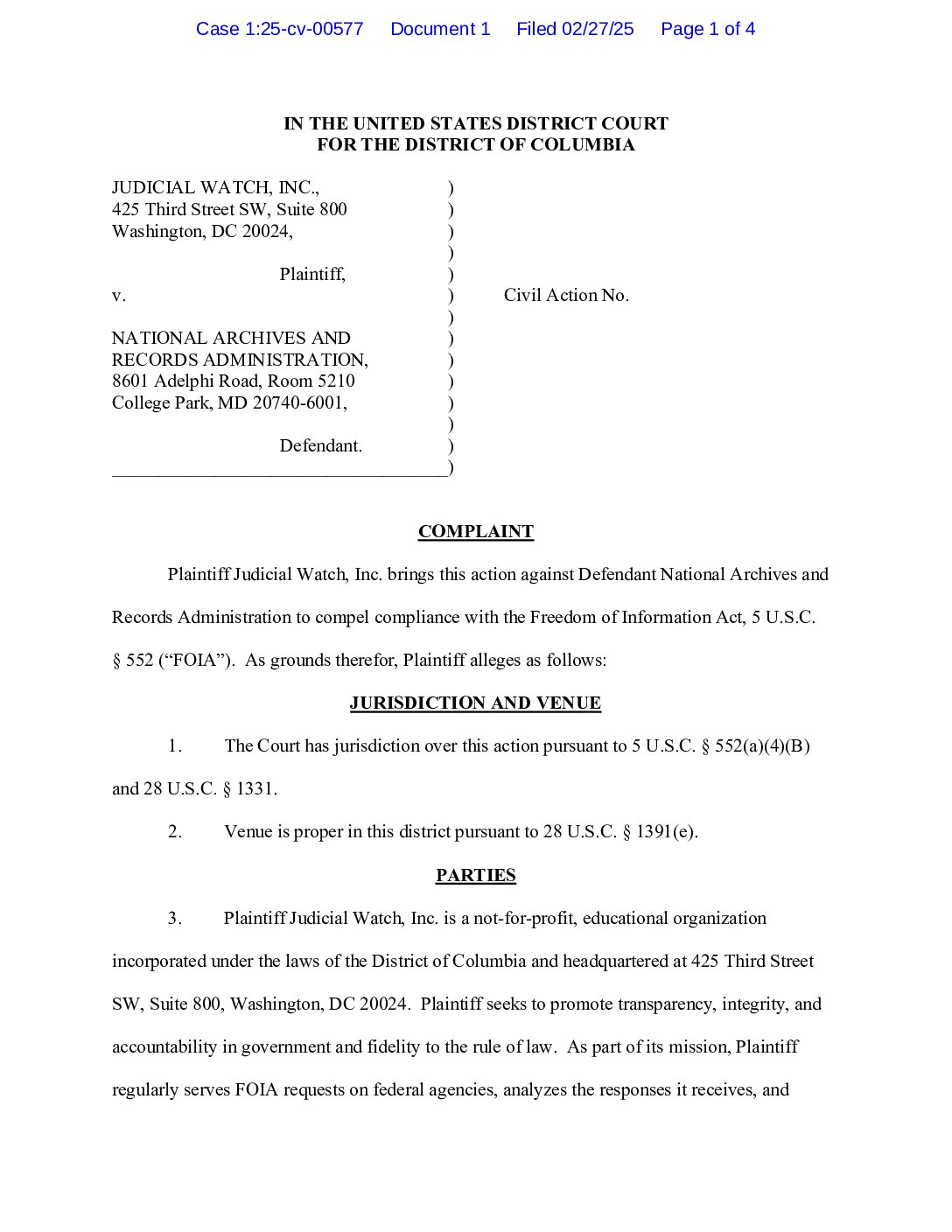 Judicial Watch, Inc. is a conservative, non-partisan educational foundation, which promotes transparency, accountability and integrity in government, politics and the law.