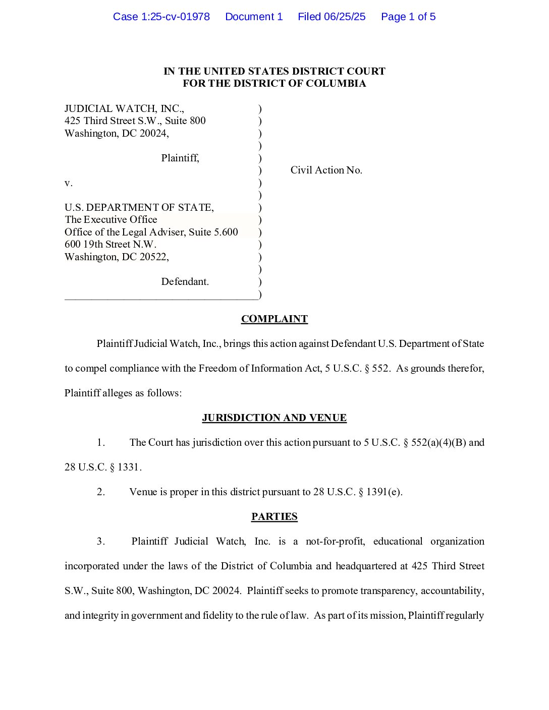 Judicial Watch, Inc. is a conservative, non-partisan educational foundation, which promotes transparency, accountability and integrity in government, politics and the law.