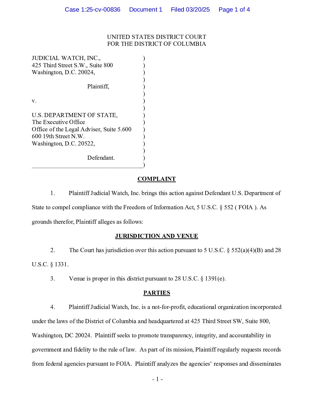 Judicial Watch, Inc. is a conservative, non-partisan educational foundation, which promotes transparency, accountability and integrity in government, politics and the law.