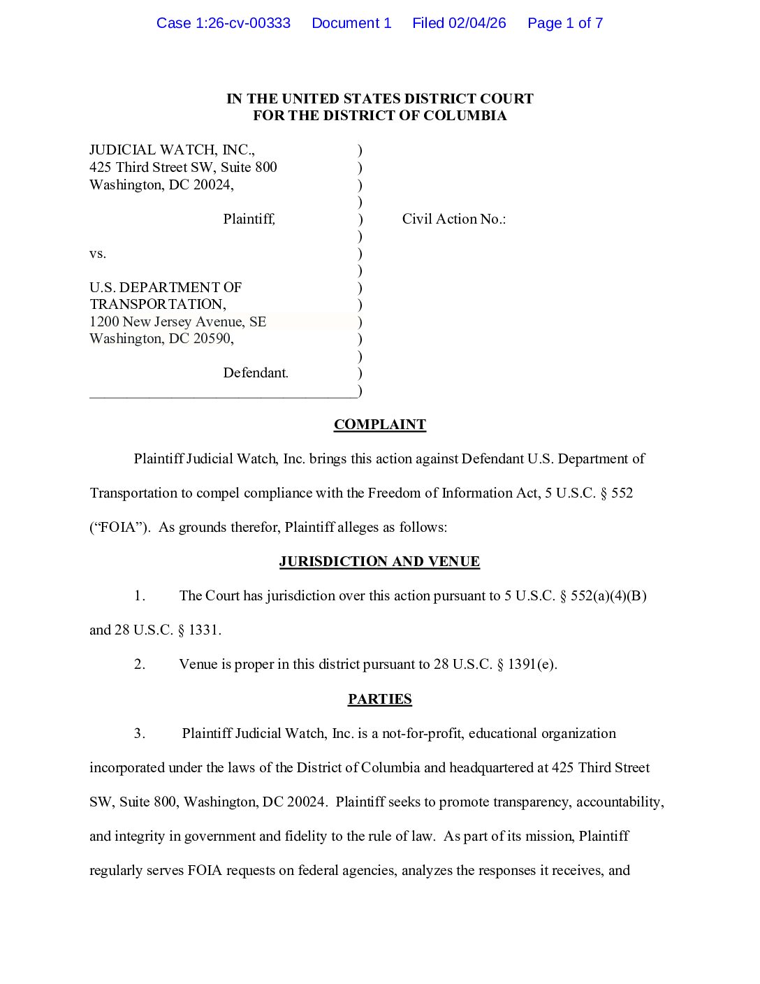 Judicial Watch, Inc. is a conservative, non-partisan educational foundation, which promotes transparency, accountability and integrity in government, politics and the law.