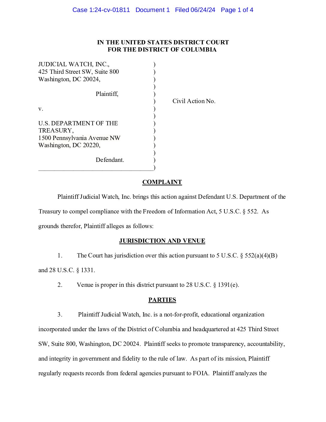 JW v Treasury CFIUS Complaint 01811