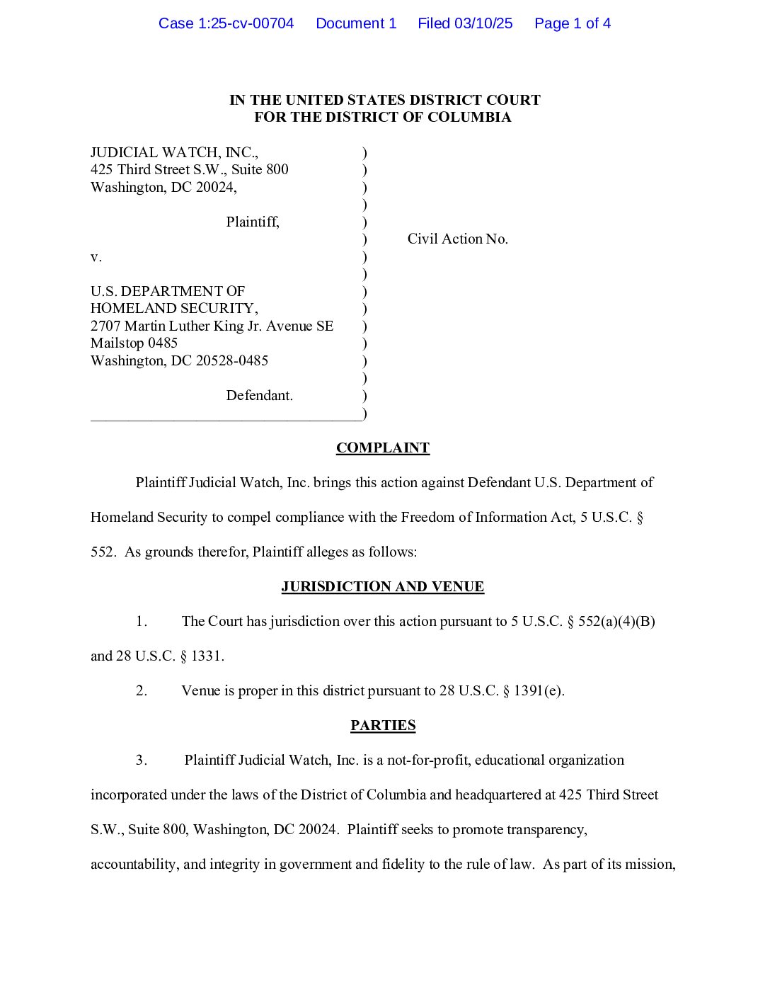 Judicial Watch, Inc. is a conservative, non-partisan educational foundation, which promotes transparency, accountability and integrity in government, politics and the law.