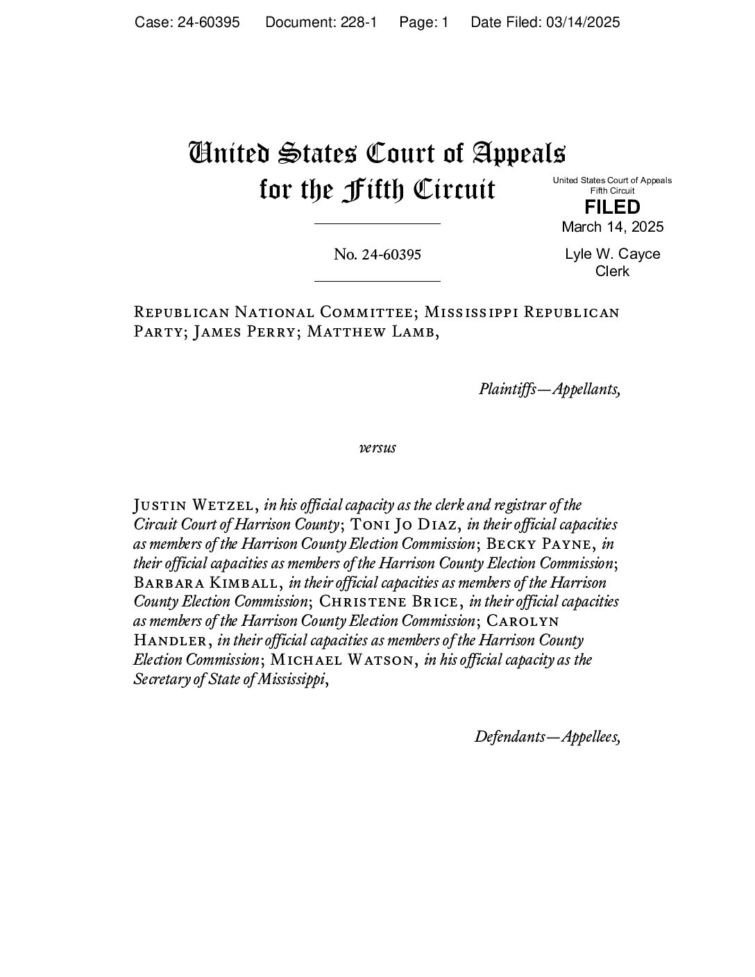 Libertarian Party of Mississippi v Wetzel on banc denied 60395 00037