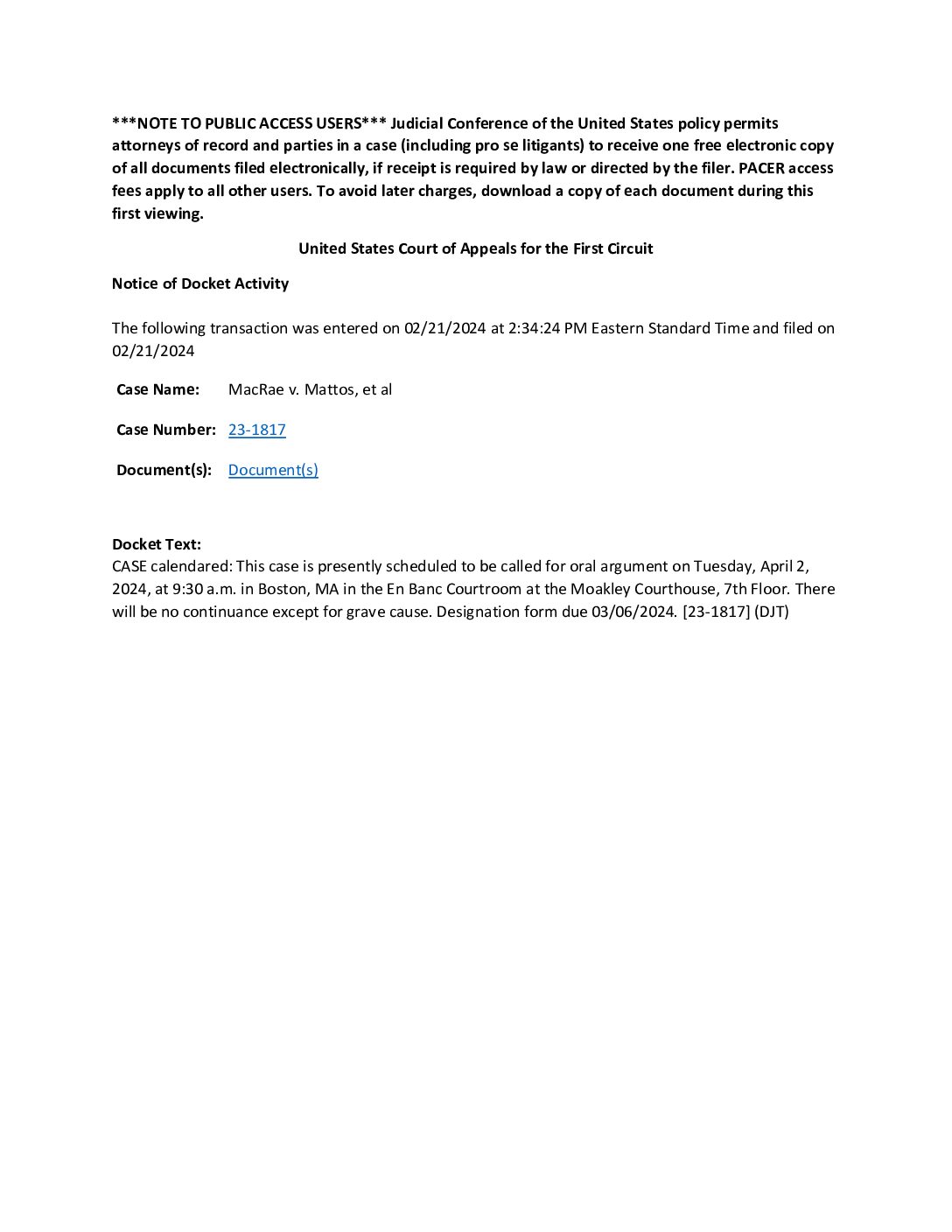 MacRae v. Mattos, et al hearing 11917 1817