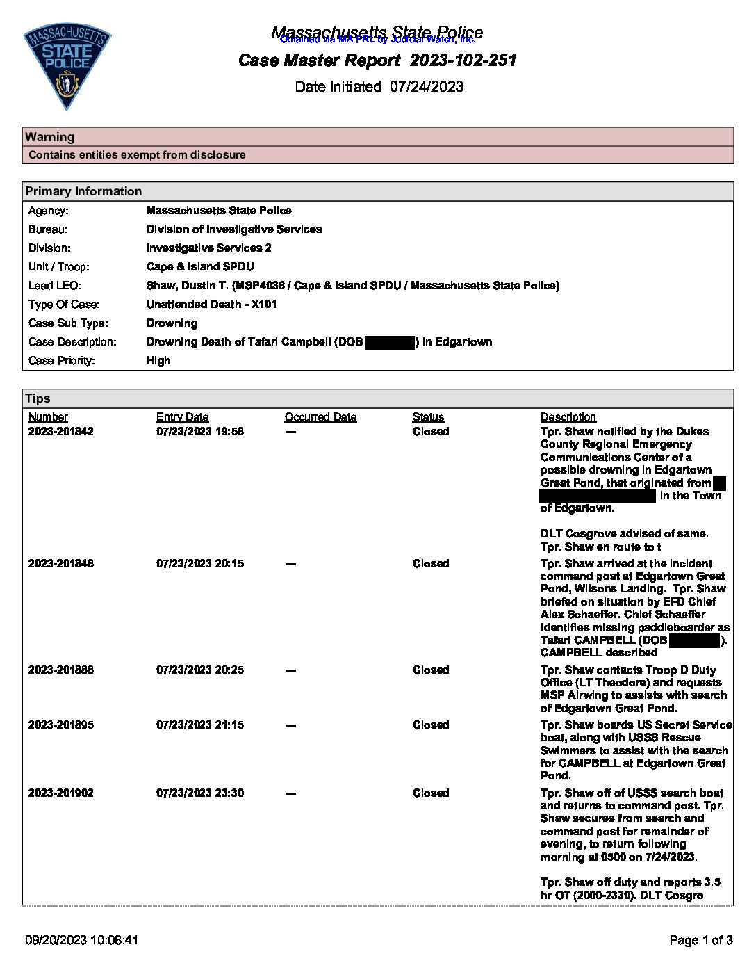 Mass State Police Obama Chef Tafari Campbell October 2023 pgs 4-6