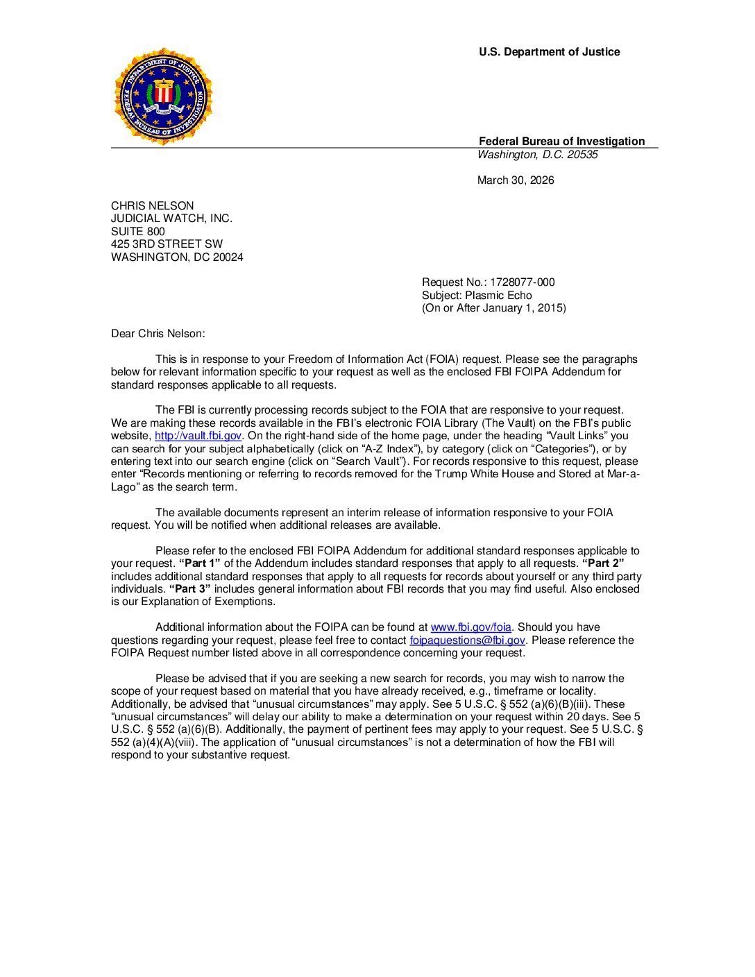 Judicial Watch, Inc. is a conservative, non-partisan educational foundation, which promotes transparency, accountability and integrity in government, politics and the law.