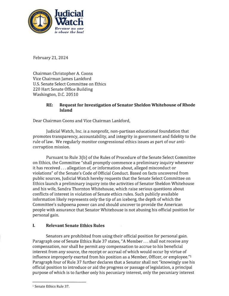 Senate Ethics Complaint Sheldon Whitehouse February 2024