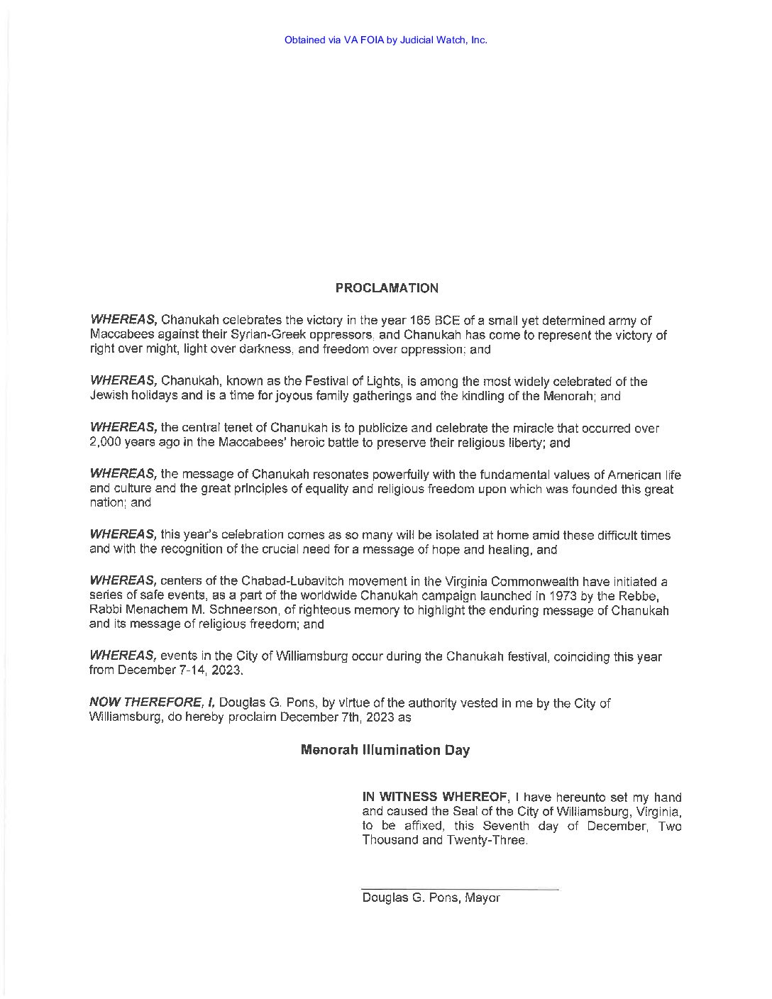 Williamsburg Menorah Cancellation December 2023 pg 44