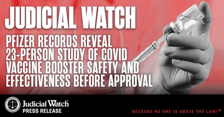 Judicial Watch: Pfizer Records Reveal 23-Person Study of Covid Vaccine Booster Safety and Effectiveness before Approval