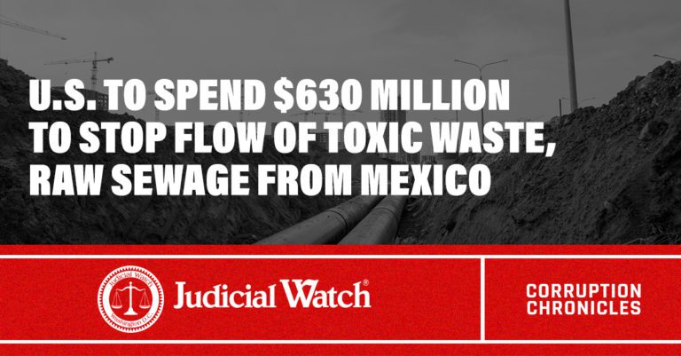 Indeed, Mexico’s trash has been seeping into the U.S. for decades and the government has quietly spent large sums of taxpayer dollars trying to clean it up. Nearly a decade and a half ago, Judicial Watch reported that the president’s proposed budget included nearly $72 million to rid U.S. beaches of the Mexican sewage that for decades infested them. At the time the allocation went public, the government already had a contract with a company to do the work because pollution caused by the raw sewage frequently closed beaches and damaged wildlife on the U.S. side of the border.